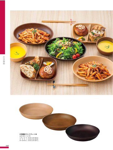 木目樹脂 043 木目樹脂ラウンドプレートM φ18×H4cm ¥1,750 ナ チ ュ ラ ル 13-43-1[91-607A] ブ ラ ウ ン 13-43-2[91-607B] ダークブラウン 13-43-3[91-607C]