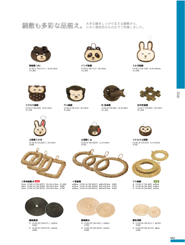 鍋敷も多彩な品揃え。大きな鍋をしっかり支える鍋敷から、 小さく個性的なものまでご用意しました。