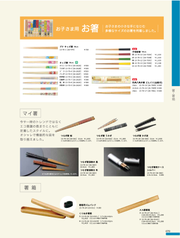 お子さまの小さな手になじむ 多様なサイズのお箸を用意しました。