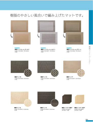 樹脂のやさしい風合いで編み上げたマットです。