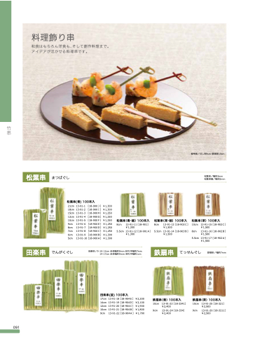 和食はもちろん洋食も、そして創作料理まで。 アイデアが活かせる料理串です。